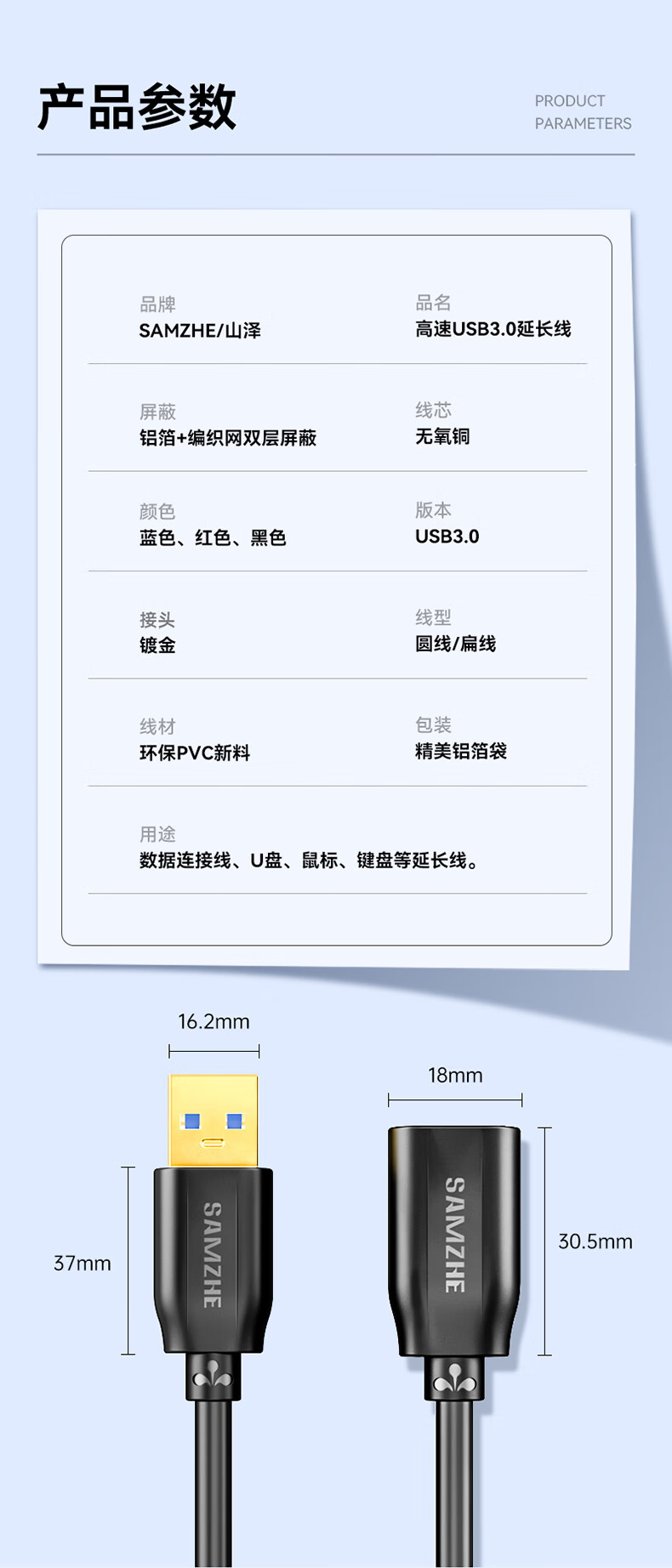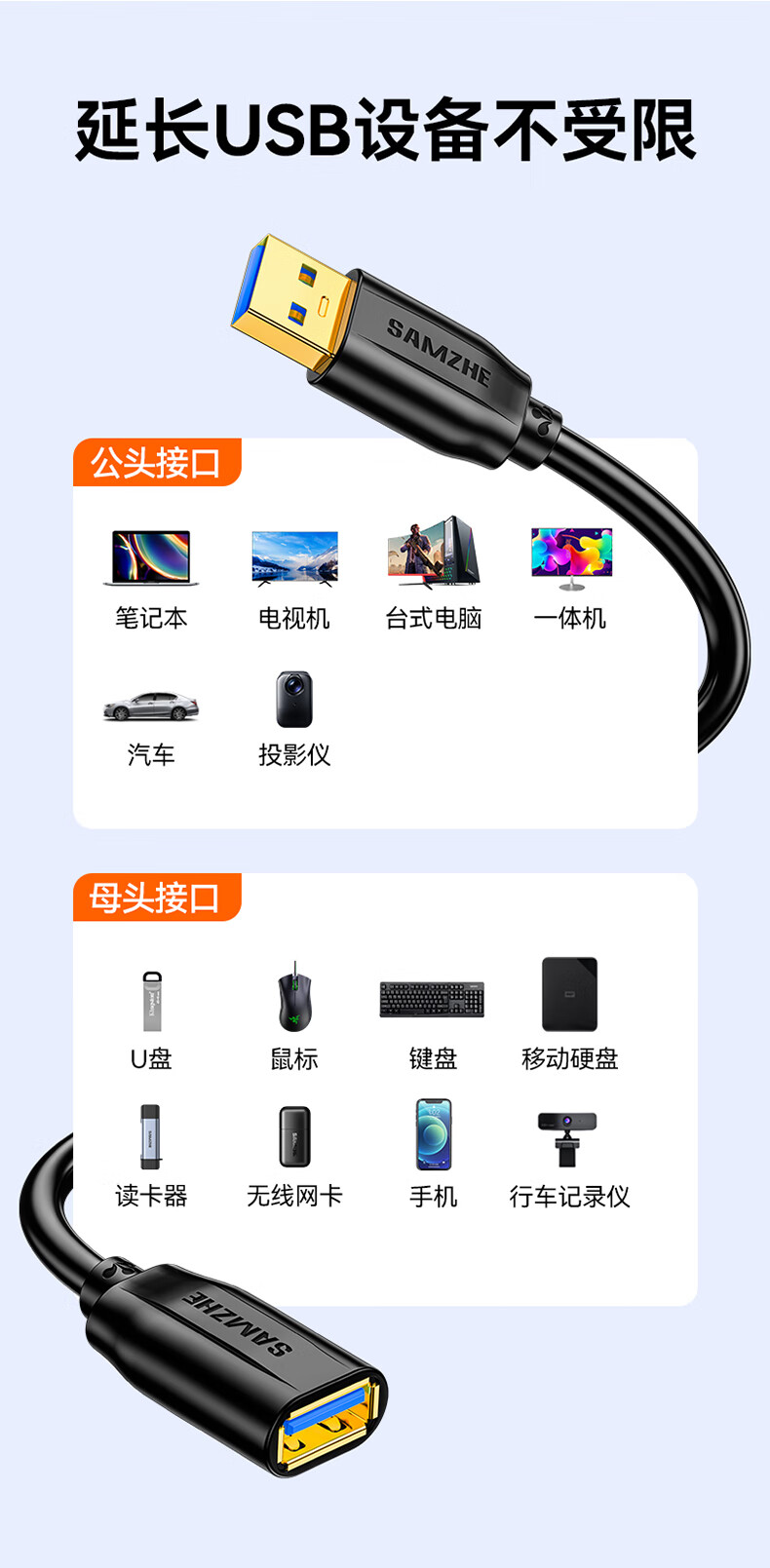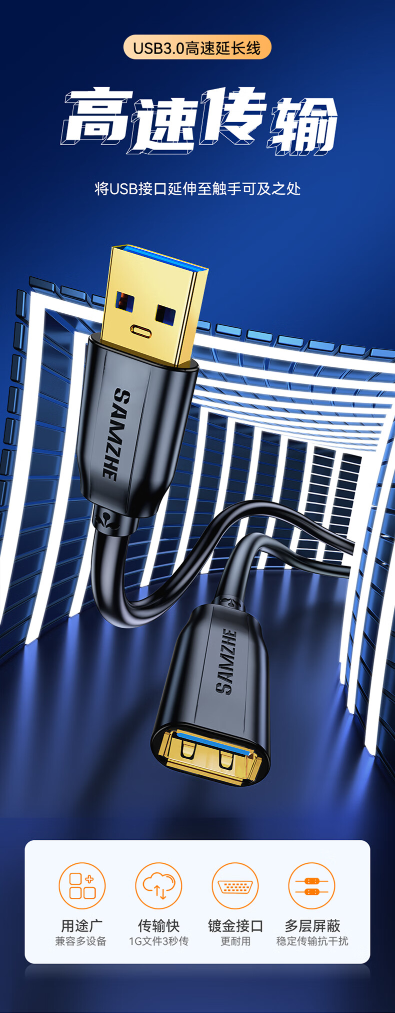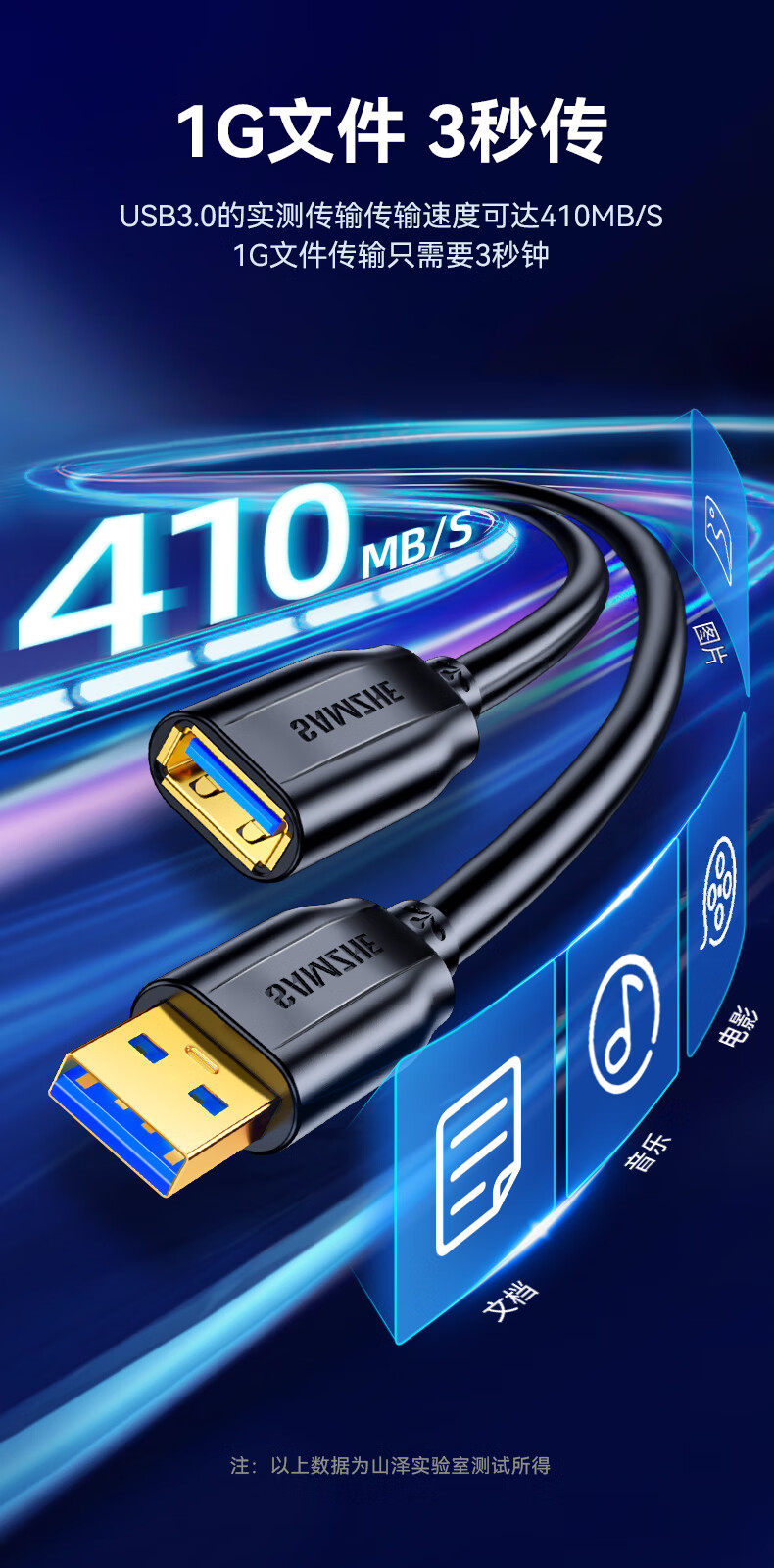 山泽(SAMZHE)UK-050 USB3.0延长线 公对母 AM/AF 高速传输数据连接线 U盘鼠标键盘读卡器加长线 黑色5米 yykj-231219140828