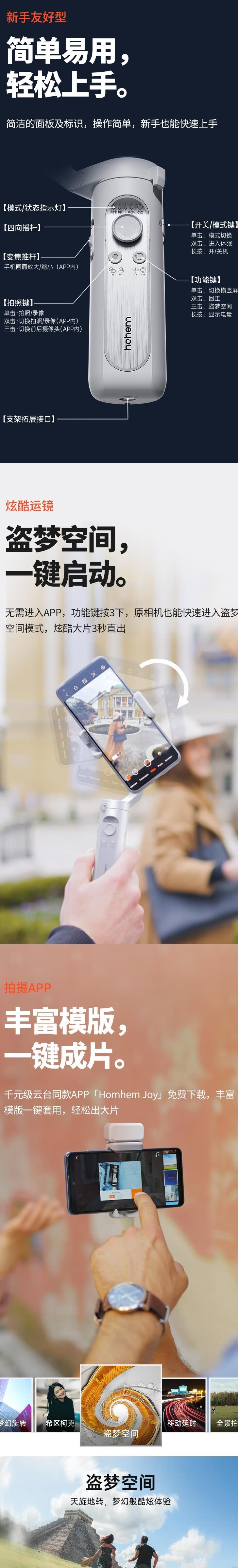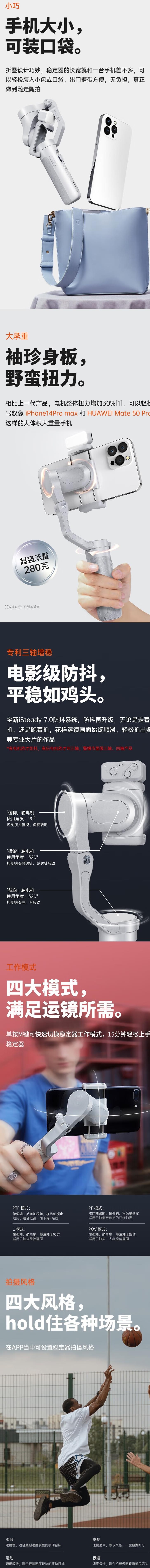 浩瀚卓越(hohem)XE手机三轴稳定器便携折叠手持防抖云台vlog视频拍摄神器自拍杆智能跟拍平衡器 浩瀚XE【标配】灰色 官方标配