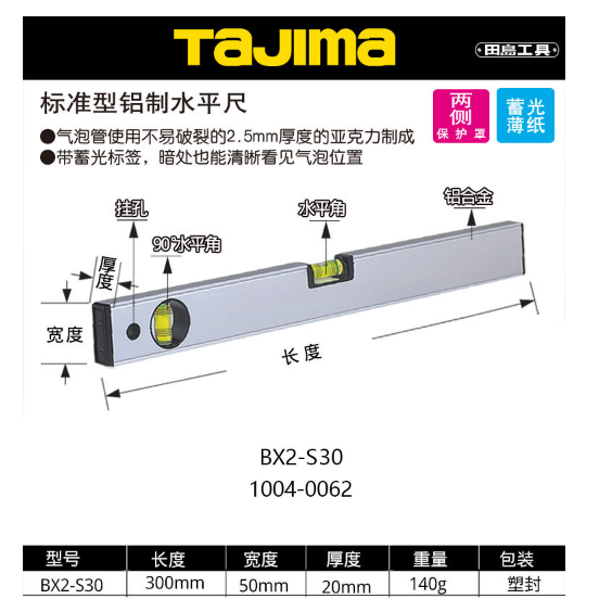 田岛(TaJIma)水平尺300mm铝合金轻型非磁性BX2-S30 1004-0062