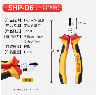 田岛(TAJIMA)三色柄6寸斜嘴钳剪线钳斜口钳工业水电工省力钳子 SHP-D6 1202-2204