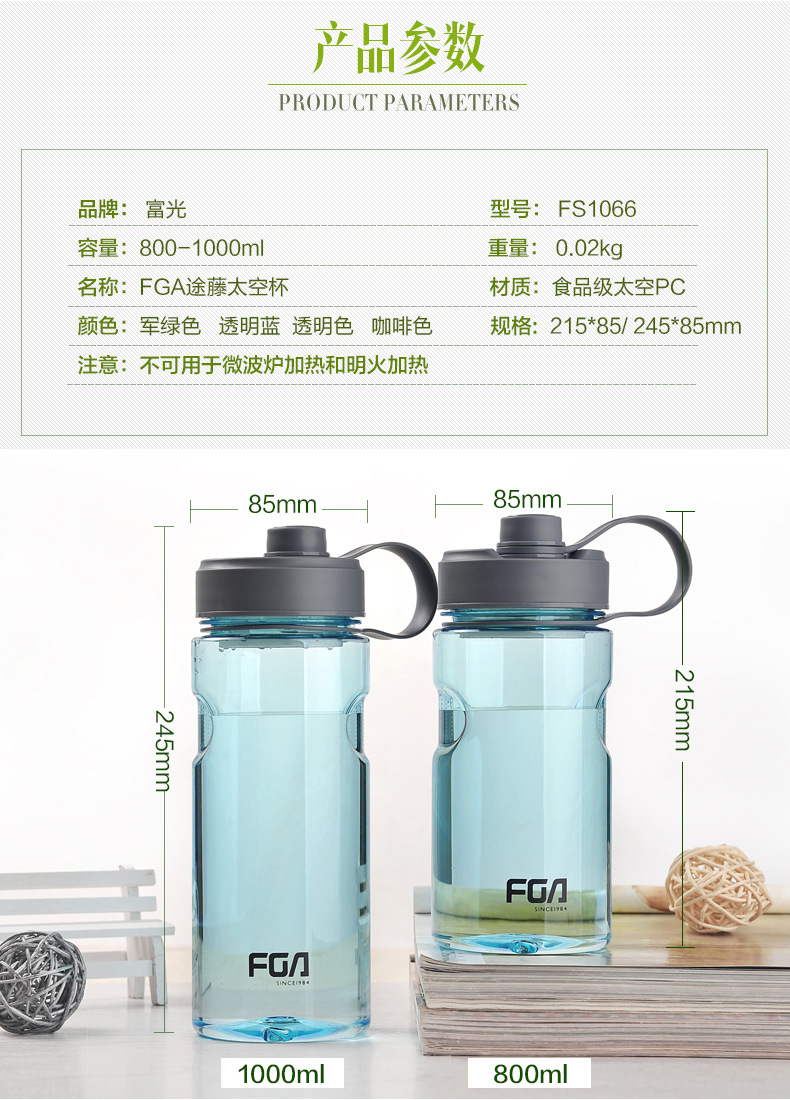 富光 FS1066-800途藤太空杯 塑料水瓶运动水壶 军绿色800ml