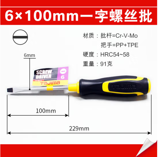 田岛TAJIMA 1301-2109 强力软胶柄一字螺丝批6-100