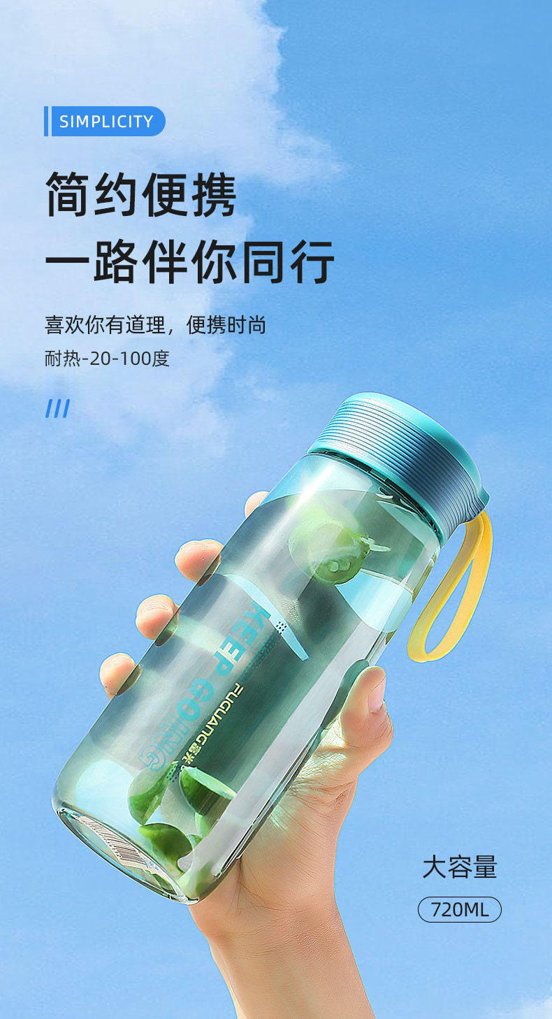 富光 FG0274-720清朗休闲水杯 塑料水杯耐高温运动水壶 深海蓝720ml