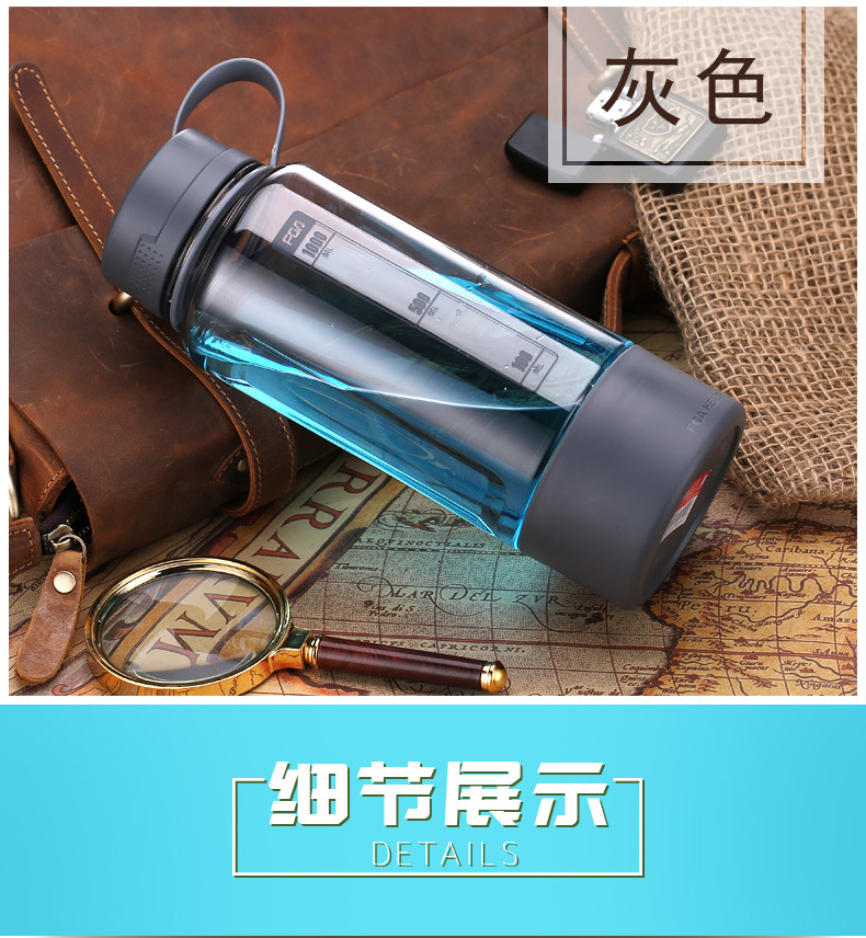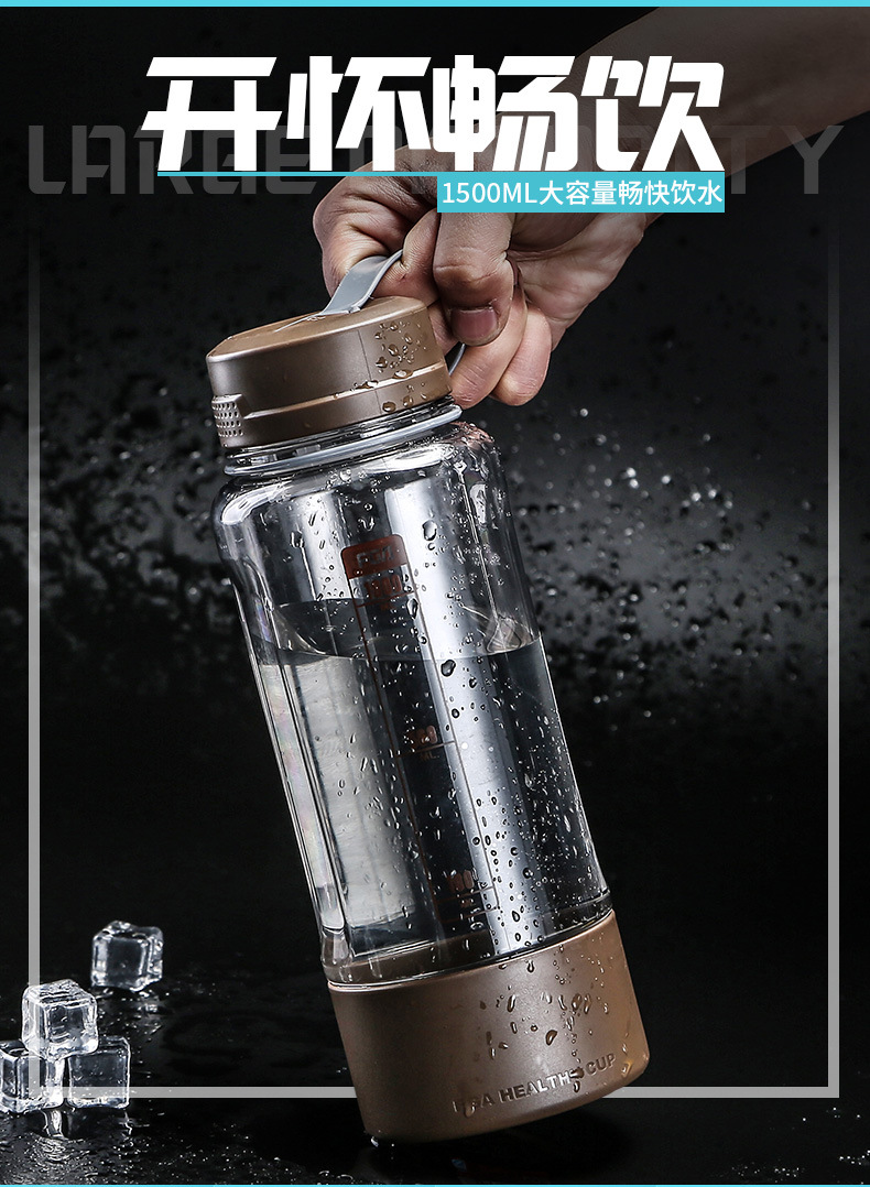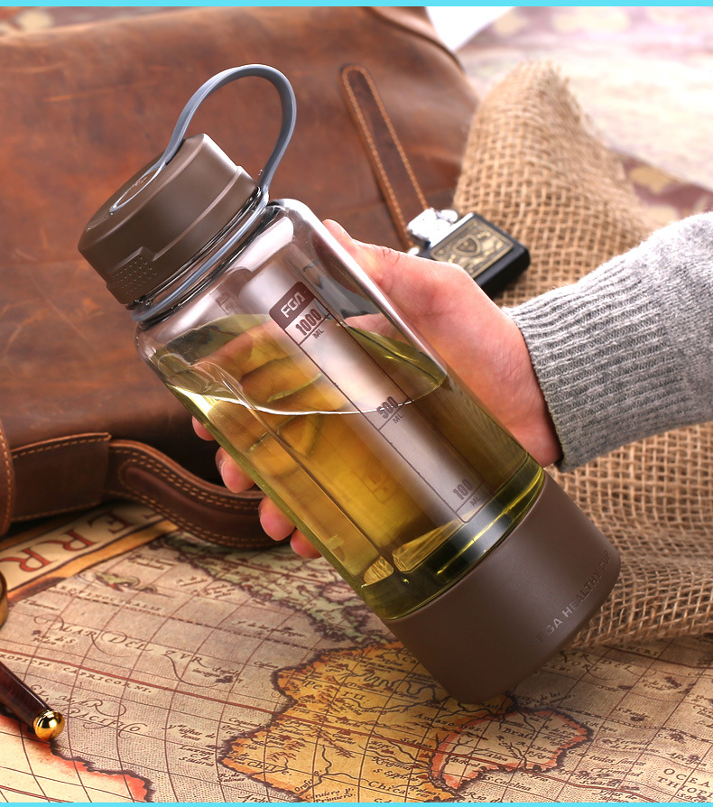 富光 FS1065-1000途锐太空杯 防摔塑料水杯水壶 带茶仓 咖色1000ml