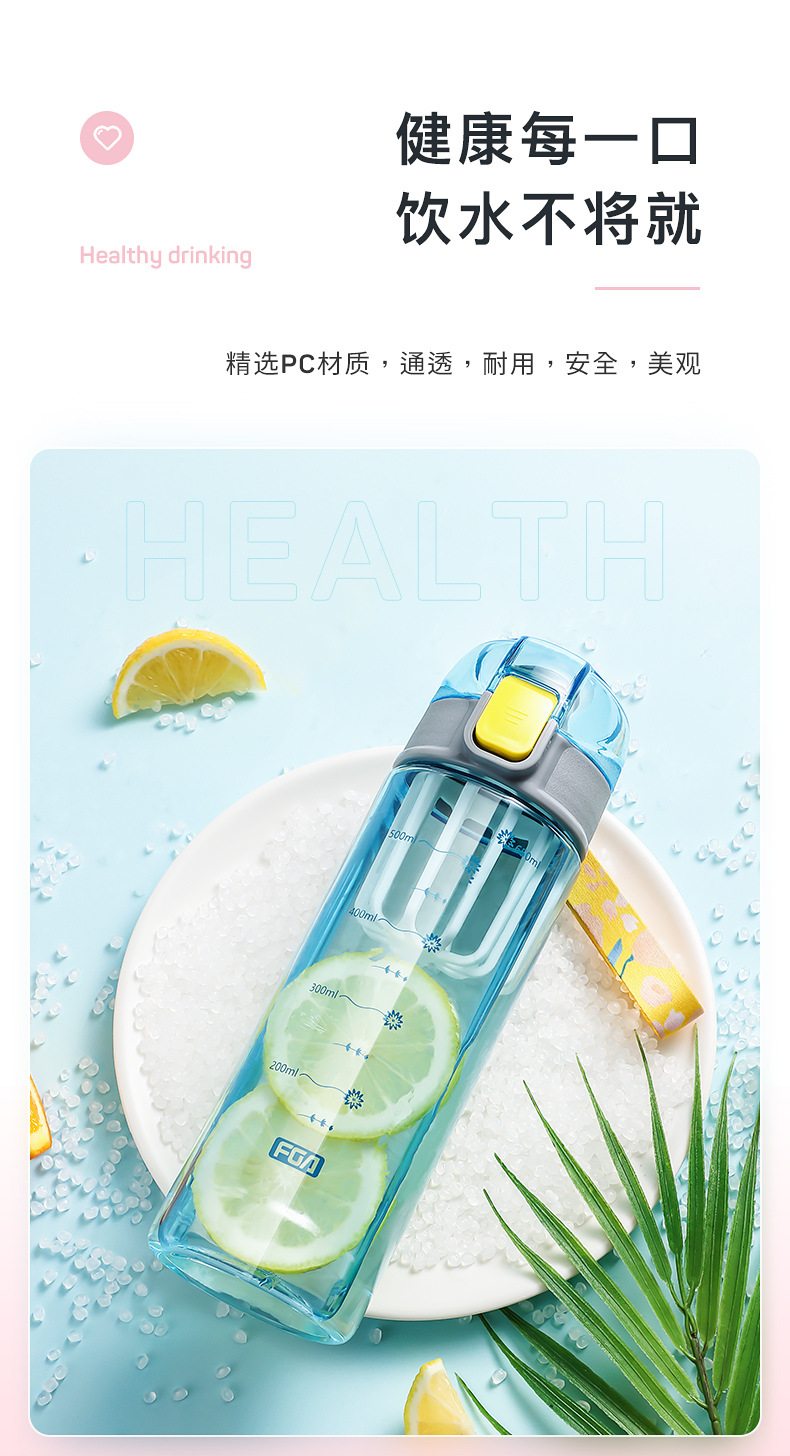 富光 FAS7701-850卡芙摇摇太空杯 塑料刻度水杯 粉色850ml