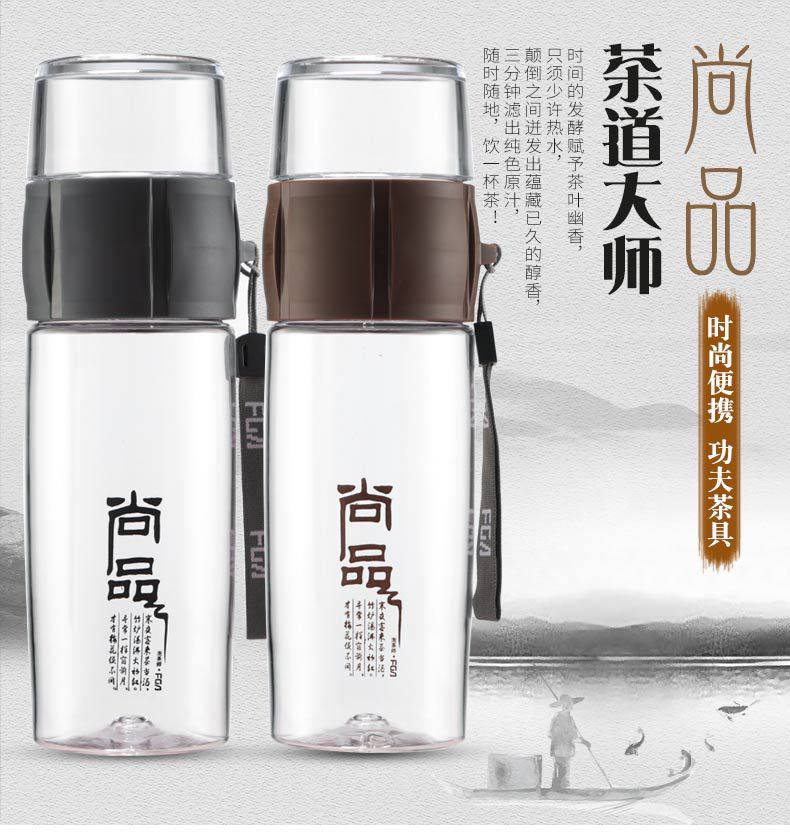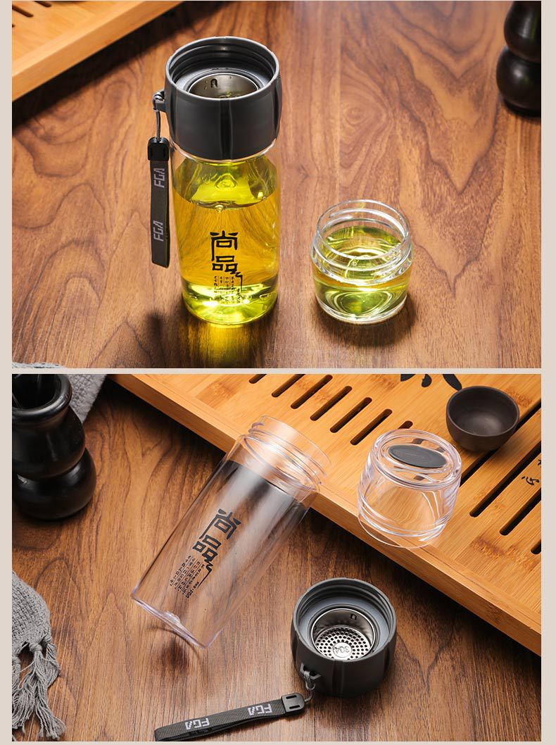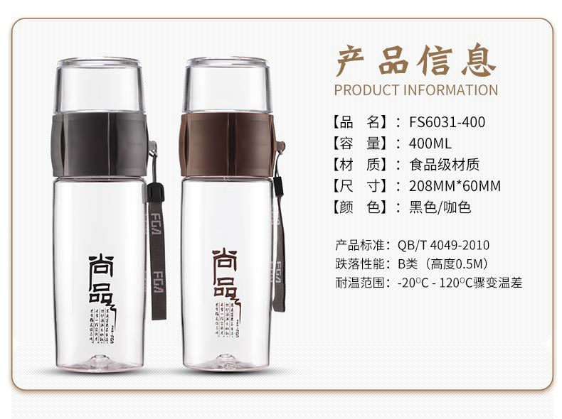 富光 FS6031-400尚品塑料水杯 带滤网独立茶仓 咖色400ml
