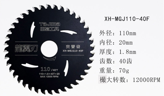 田岛(TAJIMA)日本田岛锯片tajima装修木工锯片角磨机切割机切割木材切割圆锯片 110mm_40齿龙翼刃【1605-2714】