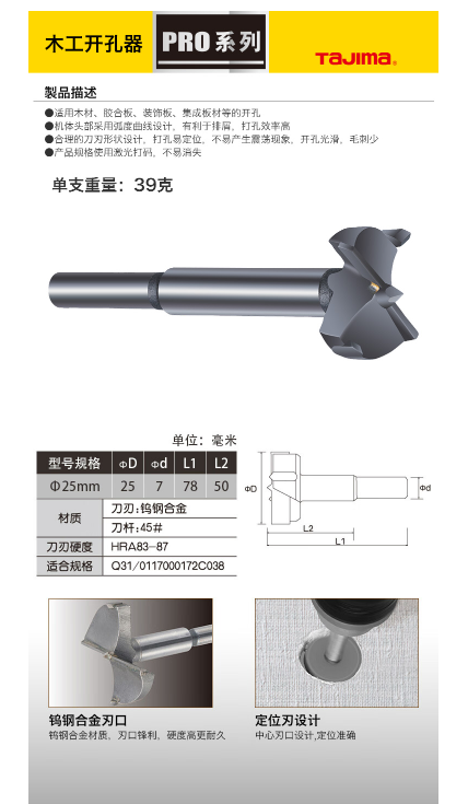田岛(TaJIma)木工开孔器25XB-MKQ 1603-2829