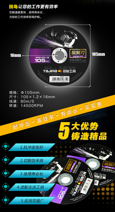 田岛(TaJIma)龙翼刃砂轮切割片 105X1.2X16XH 1604-2835