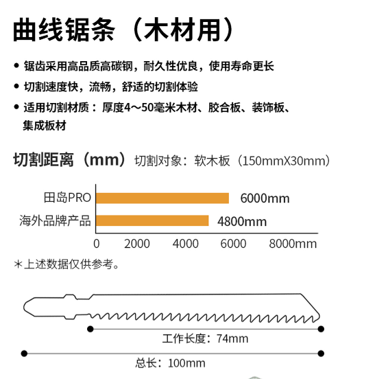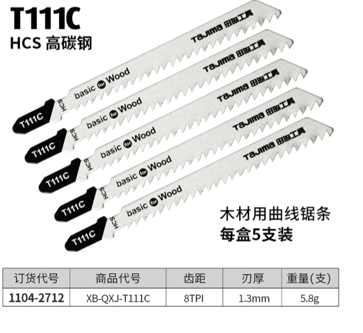 田岛(TAJIMA)日本田岛曲线锯条片钢锯条手用钢锯片条细齿木工锯条钢锯锯条 木材用 1104-2712(单支价)