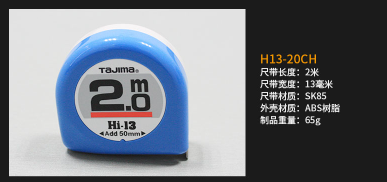 田岛(TaJIma)袖珍小号便携式卷尺长2米宽13毫米H13-20CH 1001-0031