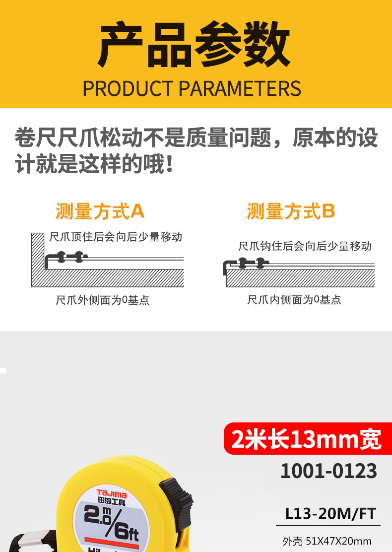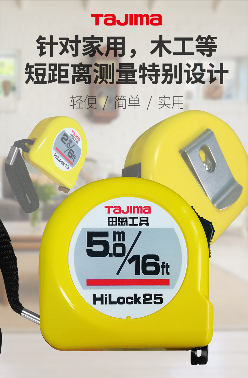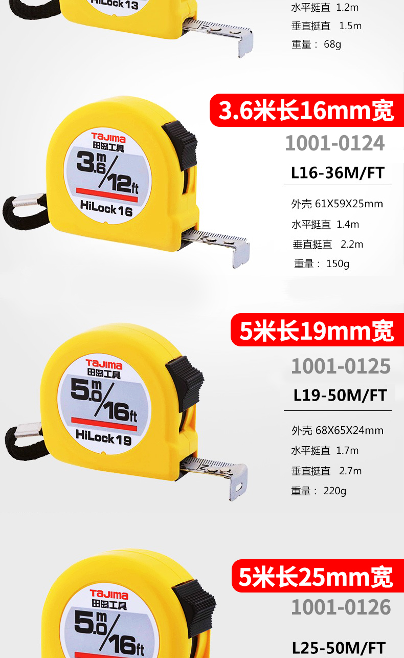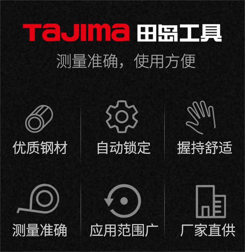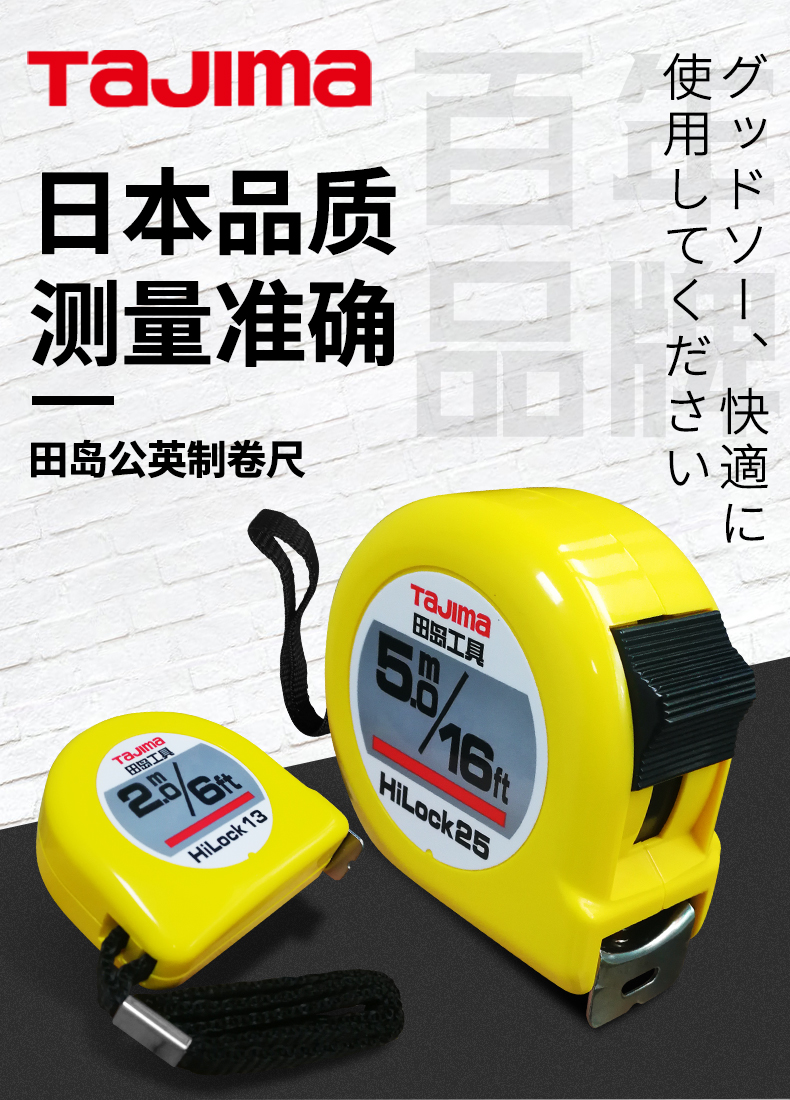 田岛五金工具tajima卷尺盒尺钢卷尺子2米3.6米5米7.5米公英制尺带 1001-0126(长5m宽25mm)