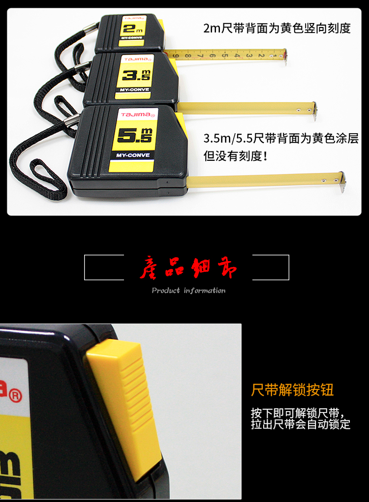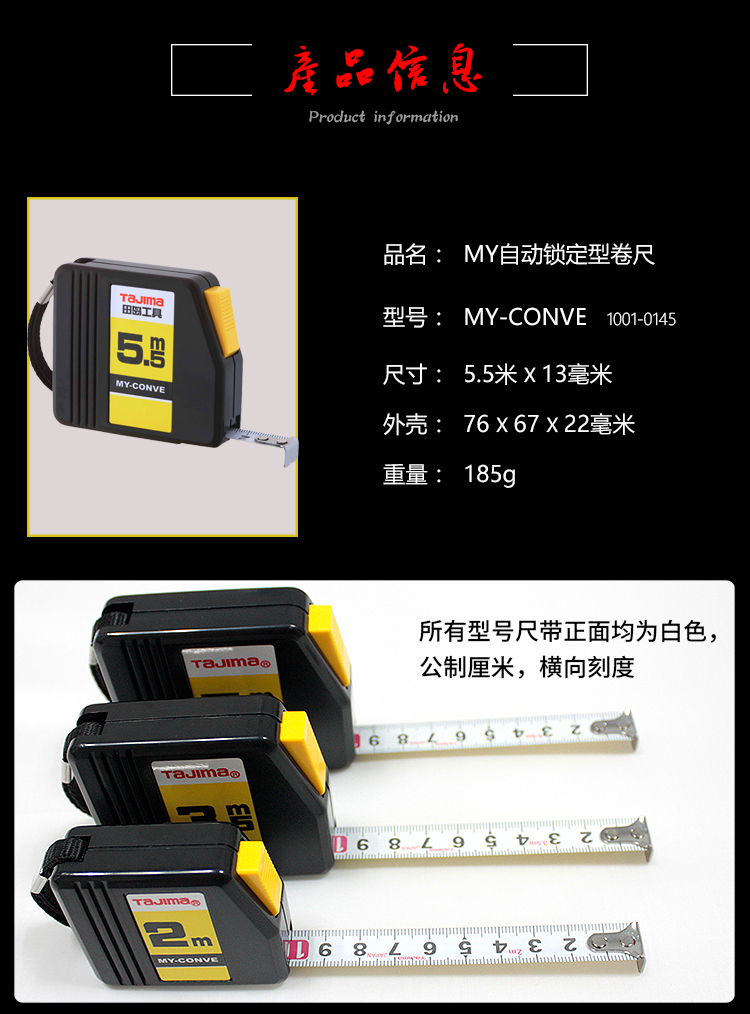 田岛(TAJIMA)MY-55 钢卷尺子5.5米尺带自动锁定止定米尺盒尺木工尺 1001-0145