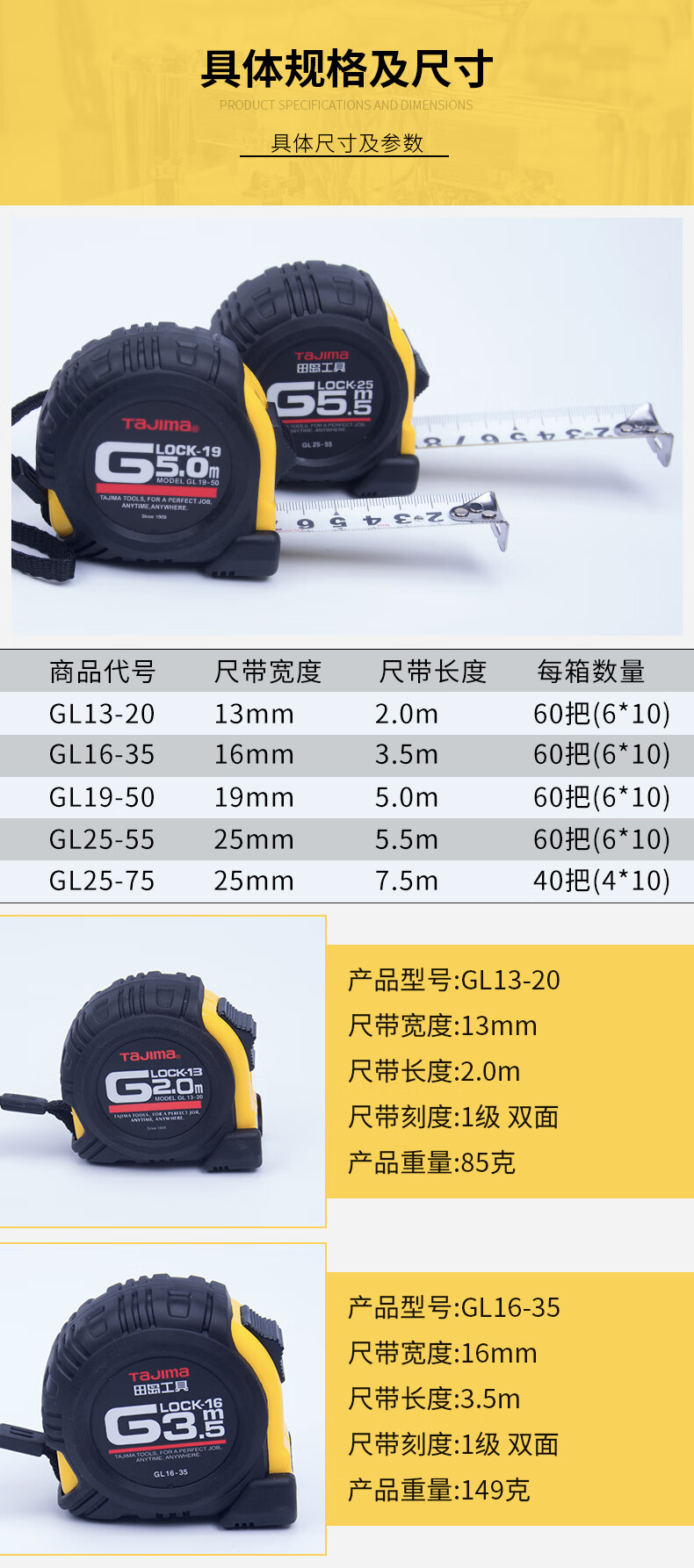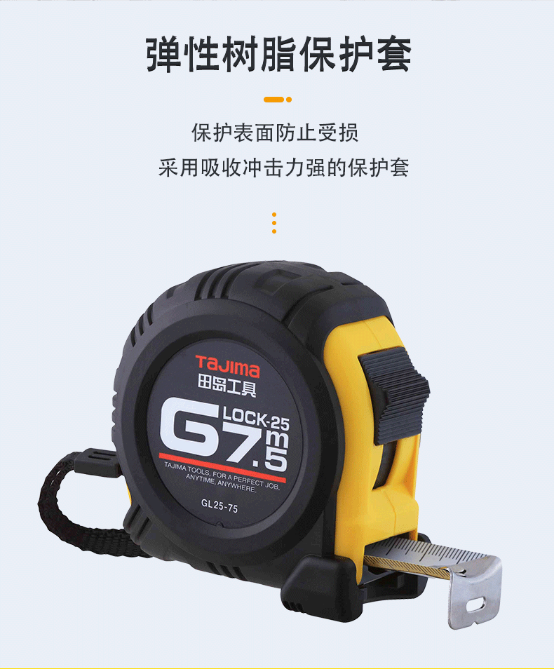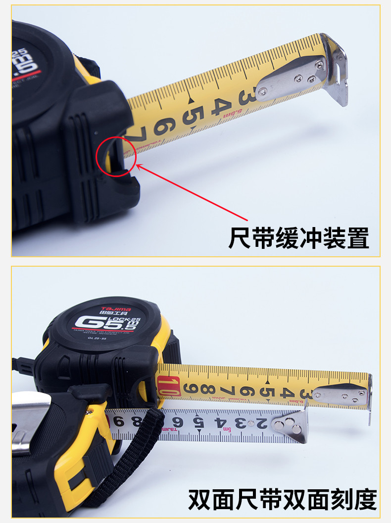 田岛(TAJIMA)GL13-20 1001-0233 2米包胶钢卷尺盒尺米尺木工尺测量伸缩尺公制 正反面刻度 13mm宽GL1320