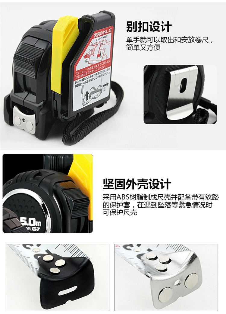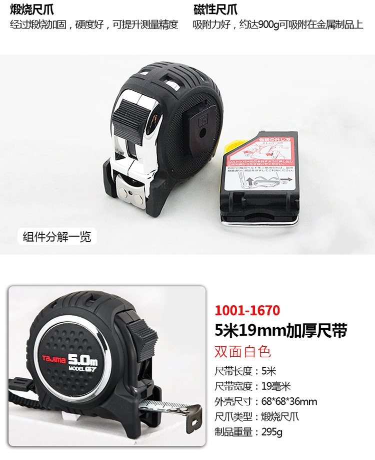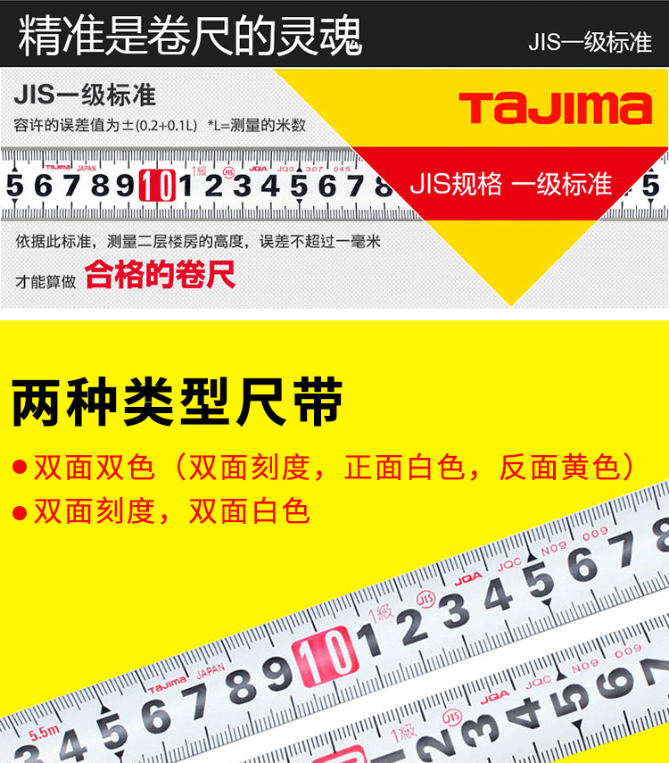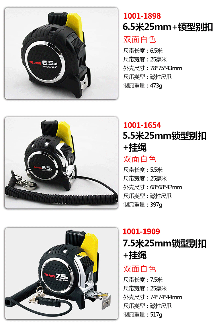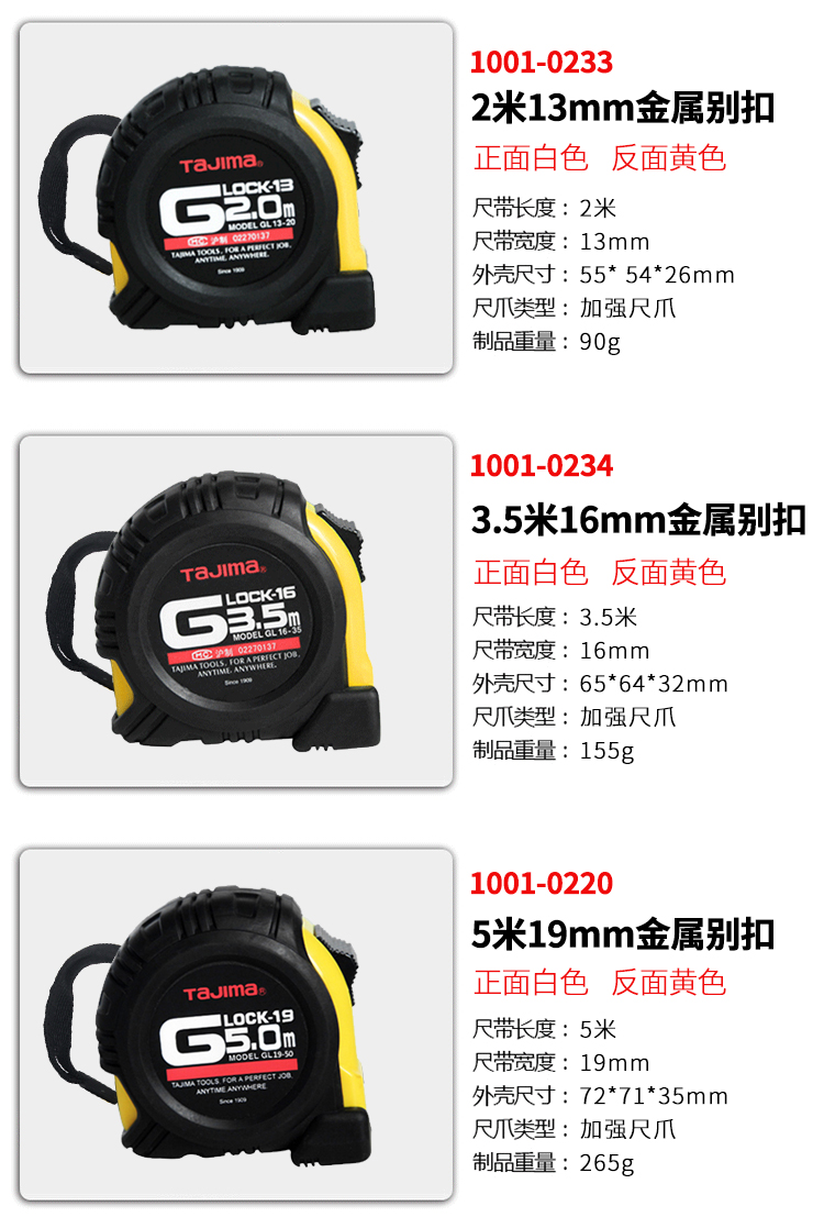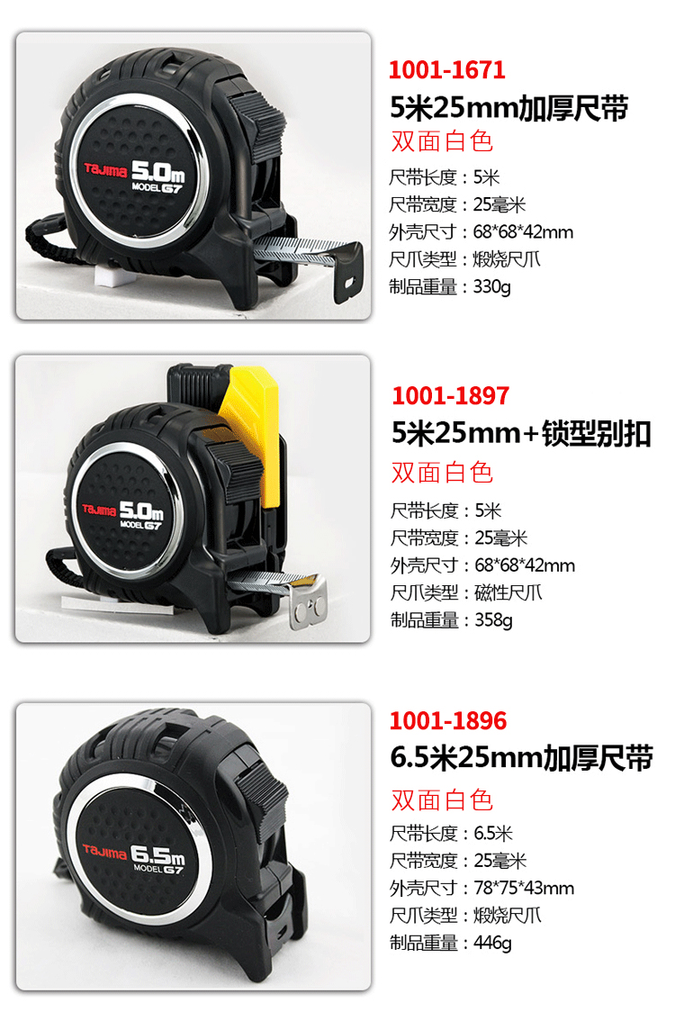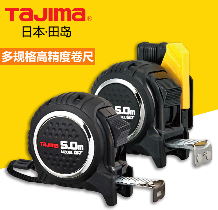 TAJIMA田岛卷尺包胶卷尺树脂套防滑抗冲击钢卷尺高精度加厚双面刻度尺带耐磨装修盒尺 1001-0234金属别扣