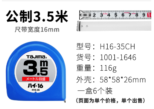 TAJIMA 日本田岛迷你钢卷尺高精密便携式卷尺日常办公用迷你卷尺1001-1646(3.5米单面刻度)