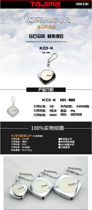 田岛(TaJIma)配登山环长3米迷你卷尺KC3-K 1001-1669