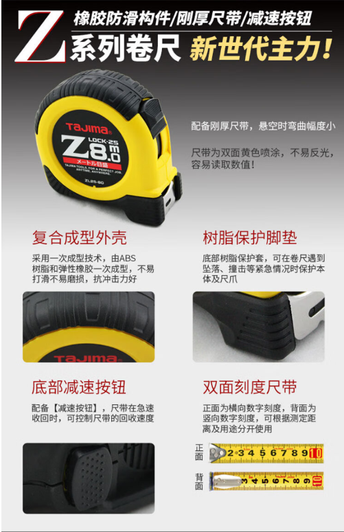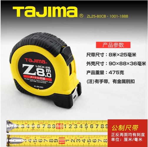 田岛TAJIMA 1001-1888 ZLOCK卷尺25-80JIS尼龙尺带8mx25mm