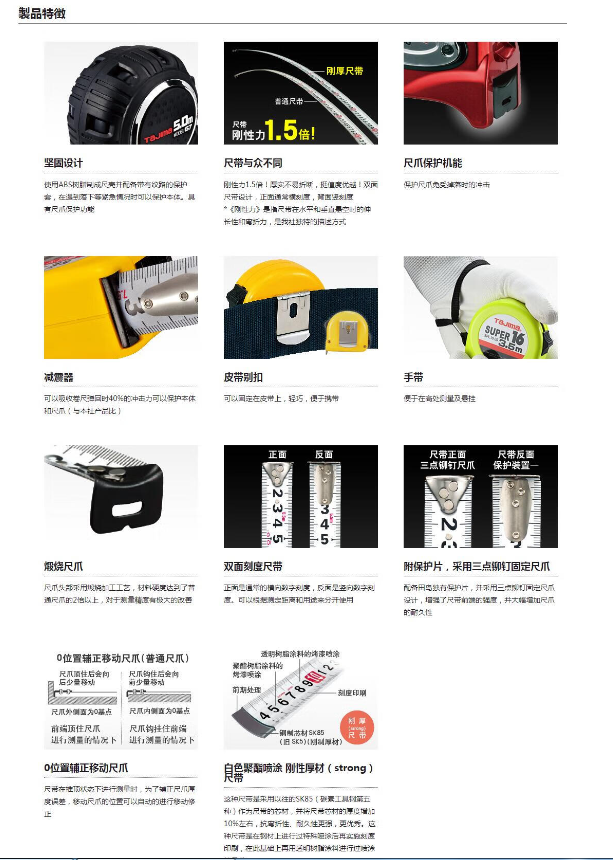 TAJIMA田岛卷尺包胶卷尺树脂套防滑抗冲击钢卷尺高精度加厚双面刻度尺带耐磨装修盒尺 1001-1896