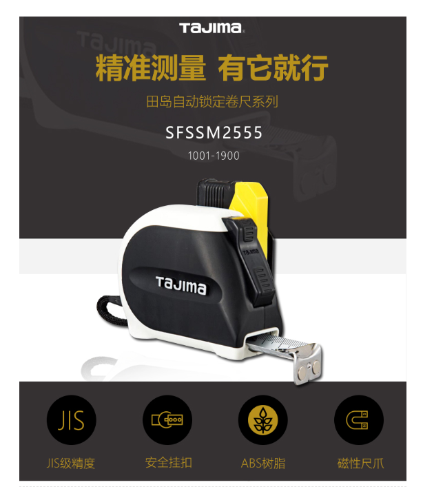 田岛(TaJIma)长5.5米钢卷尺盒尺木工尺伸缩尺配安全别扣25mm宽 1001-1900