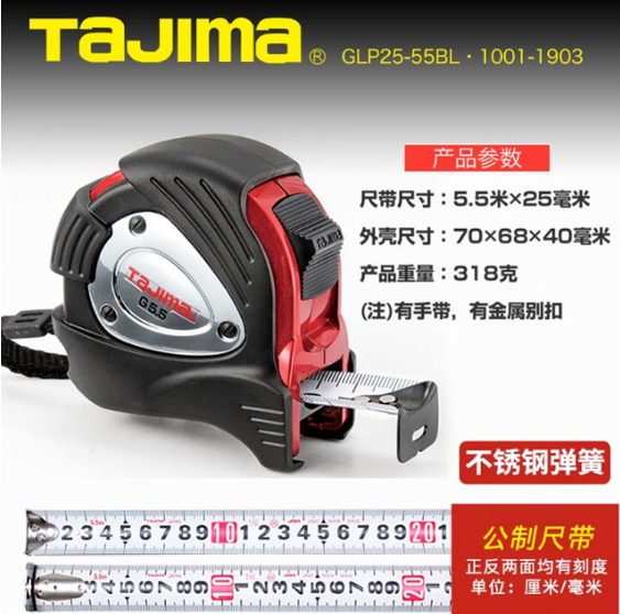 田岛TAJIMA 1001-1903 GLOCKPLUS卷尺JIS丙烯基双面尺带5.5mx25mm