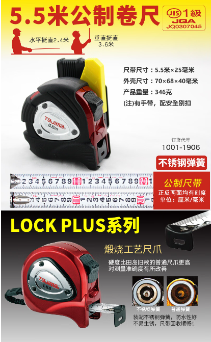 田岛TAJIMA 1001-1906 GLOCKPLUS卷尺配安全别扣5.5mx25mm