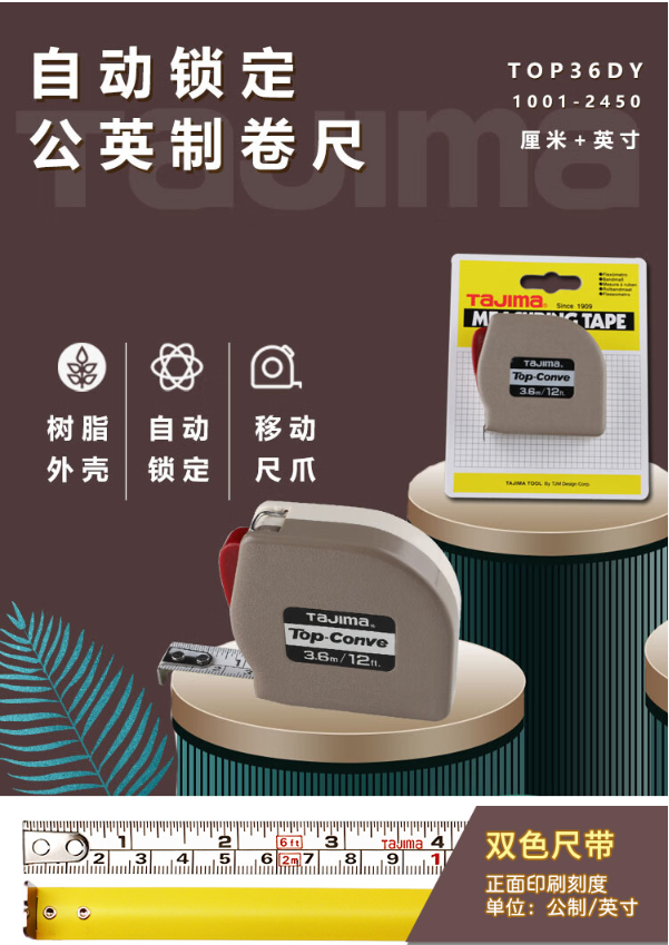 田岛(TaJIma)公英制卷尺钢卷尺3.6米尺子自动锁定1001-2450