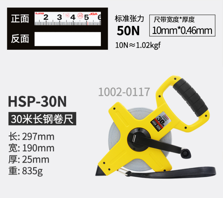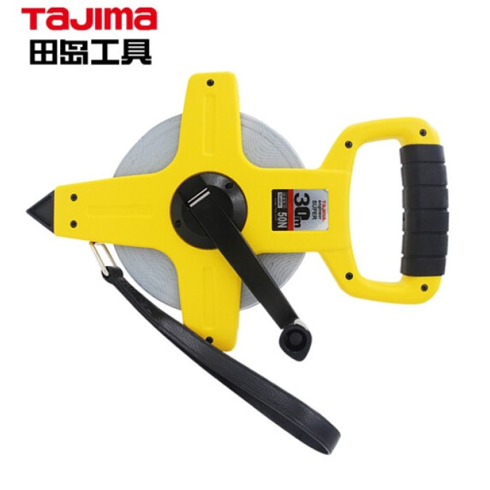 TAJIMA 田岛不锈钢防水防空转50米工程长钢卷尺进口工业绘测尼龙覆层钢卷尺 尼龙绳钢卷尺30米1002-0117
