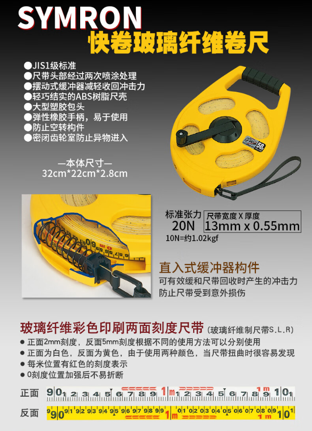 田岛TAJIMA 1003-1674 SYMRON快卷玻璃纤维卷尺50mx13mm