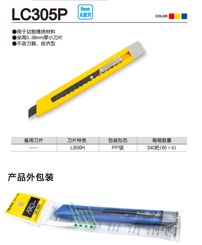 田岛TAJIMA 1101-0008 LC305PP三色可选小型美工刀