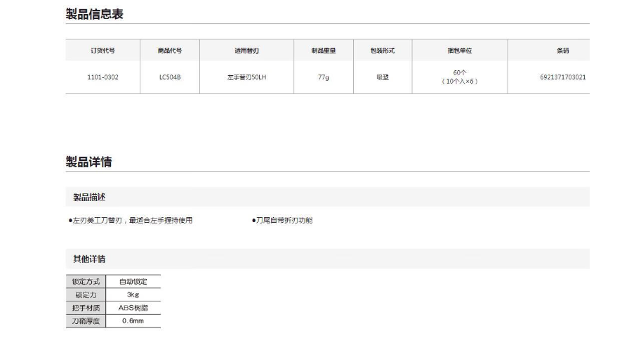 田岛(TAJIMA)左刃美工刀504 1101-0302