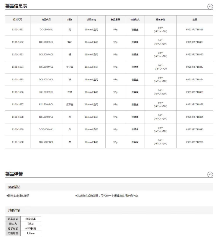 田岛TAJIMA 1101-1681 DRIVER 美工刀500 黄