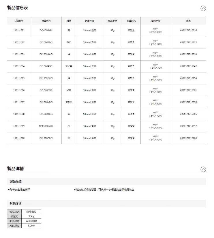 田岛(TAJIMA)DRIVER美工刀500紫 1101-1688