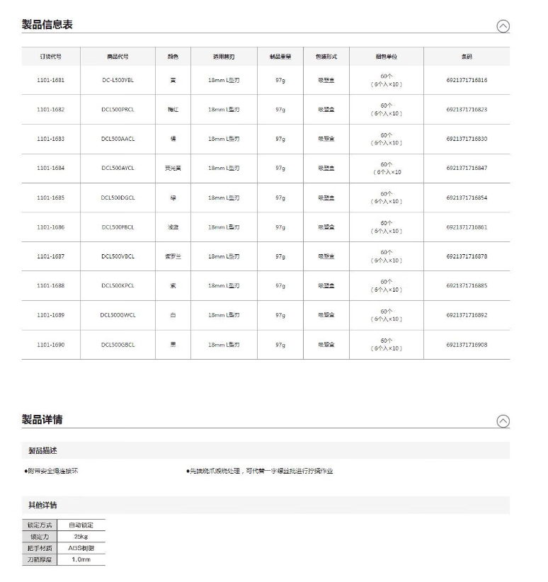 田岛(TAJIMA) DRIVER美工刀500黑 1101-1690