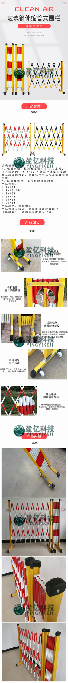 玻璃钢绝缘伸缩管式围栏 隔离栏1.2米高*5米长红白 加厚