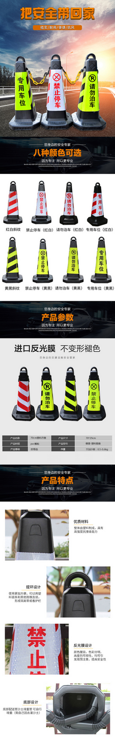 路锥塑料反光方锥雪糕筒路障警示柱橡胶交通设施 黄黑禁止停车