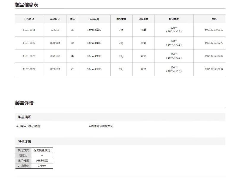 田岛(TAJIMA)美工刀 501 蓝色 1101-3027