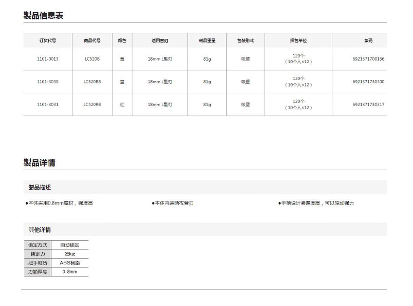 田岛(TAJIMA)美工刀 520 蓝色 1101-3030