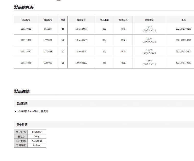 田岛(TAJIMA)美工刀 550 绿色 1101-3034
