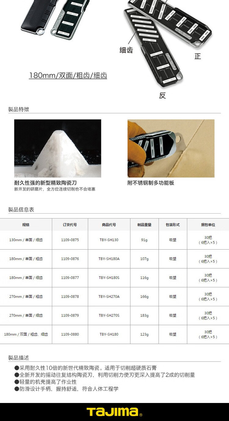 田岛TAJIMA 1109-0877 180陶瓷锉刀(细)