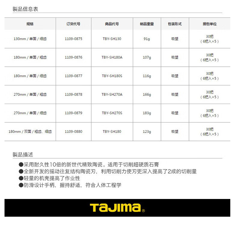 田岛TAJIMA 1109-0879 270陶瓷锉刀(细)