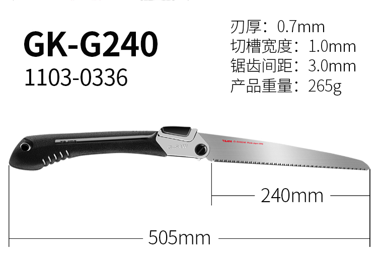 田岛tajima工具折叠锯木工手锯户外锯子园林果树锯家用锯子 GK-G240 折叠锯270mm 1103-0336