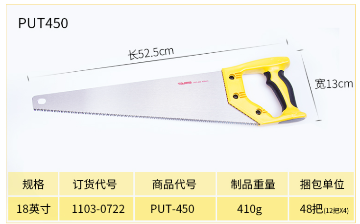 田岛(TAJIMA)PUT-450 手板锯450 快速切割工具手拉伐木锯园林手板锯 18寸木工手板锯 1103-0722