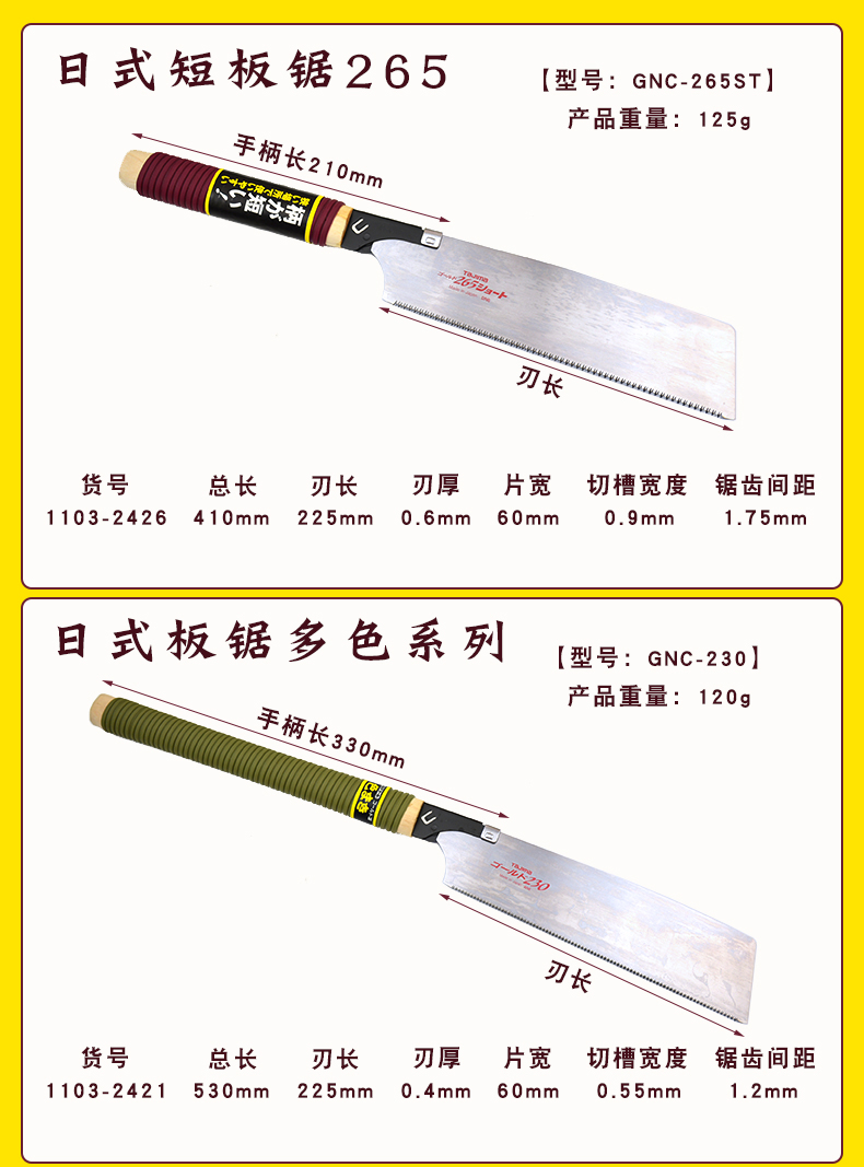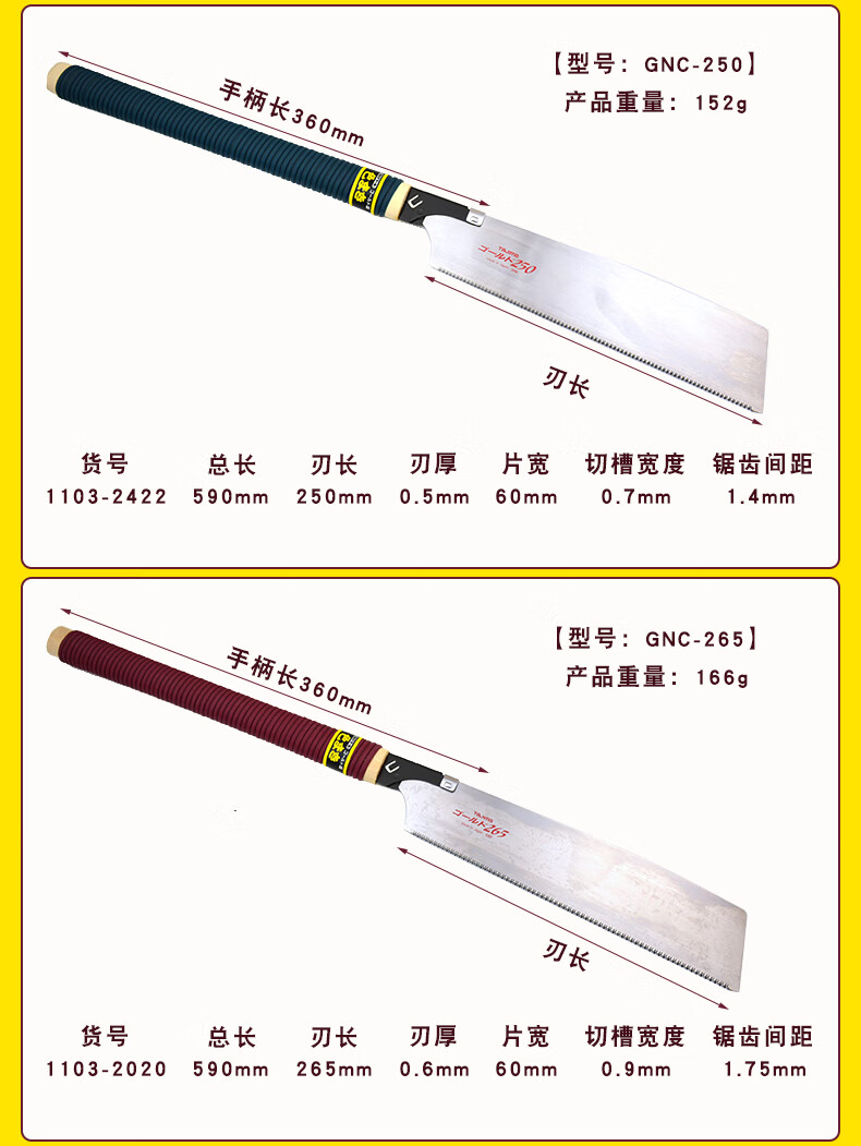 田岛(TAJIMA)GNC-300 日式手板锯手锯木工锯子直柄刀锯园林修枝伐木锯 1103-2021