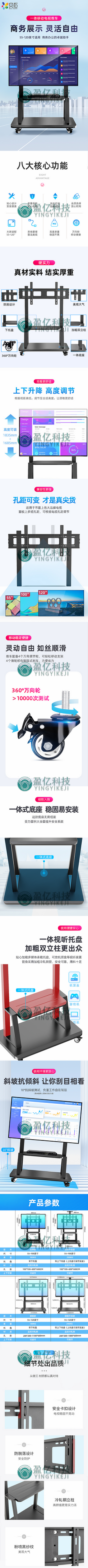 贝石 电视落地支架 大尺寸移动电视机推车 液晶显示屏一体机白班机通用立式展示架 WMX007-3(超大号