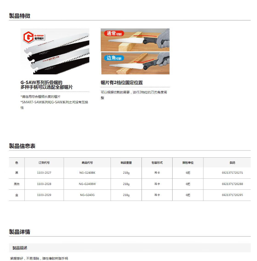 田岛(TAJIMA)G-SAW拉锯手柄240金 1103-2029