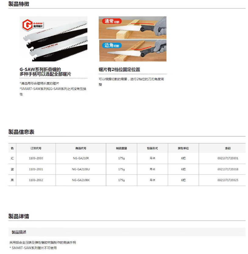 田岛(TAJIMA)G-SAW铝合金手柄210红 1103-2030
