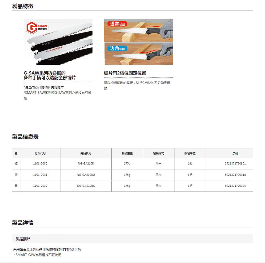 田岛(TAJIMA)G-SAW铝合金手柄210蓝 1103-2031