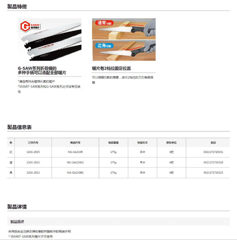 田岛(TAJIMA)G-SAW铝合金手柄210黑 1103-2032