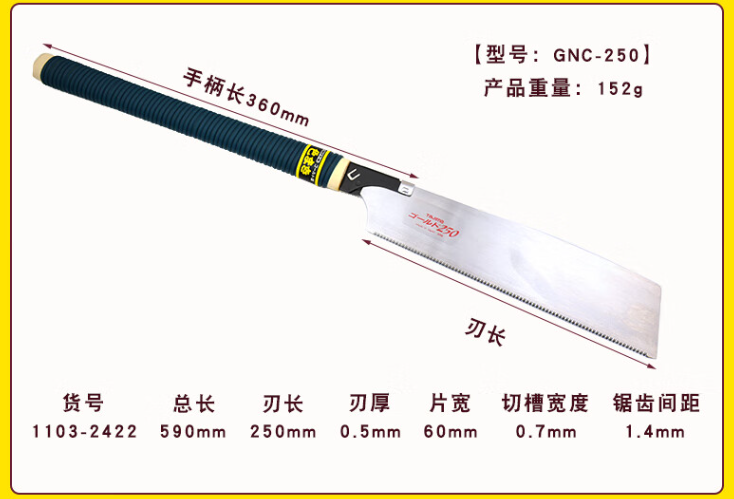 田岛(TAJIMA)GNC-250 日式手板锯手锯木工锯子直柄刀锯园林修枝伐木锯 1103-2422